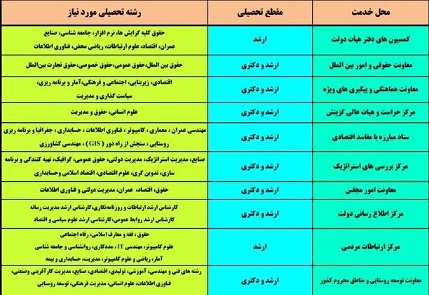 محل خدمت و رشتههای تحصیلی/ مقطع مورد نیاز